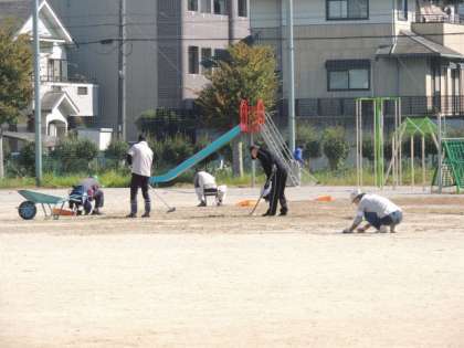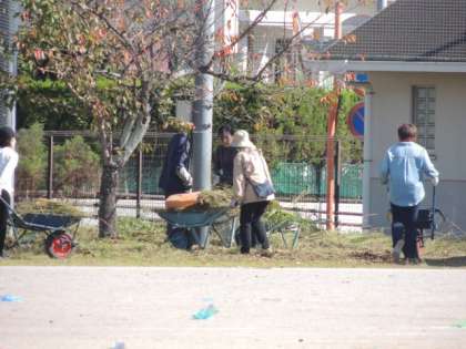 10月13日(金)9時より、草取りボランティアの方々が集まって運動場の草取り、草刈り機で刈られた草運びをしてくださいました。