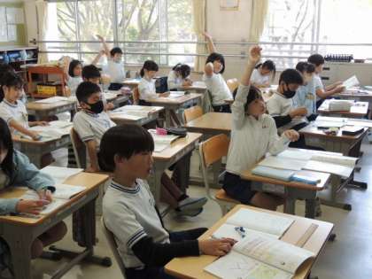 3年生は算数の授業で、コンパスを使って学習しています。