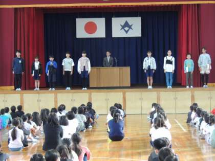 各委員会の委員長は、全体を取りまとめる決意表明を行いました。全校のみんなに語りかける姿は、堂々とし頼もしく感じました。