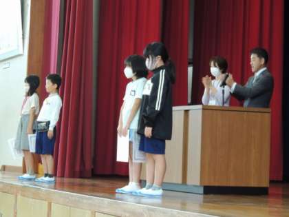 その後、科学研究作品の表彰、校長先生のお話を聞きました。