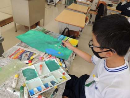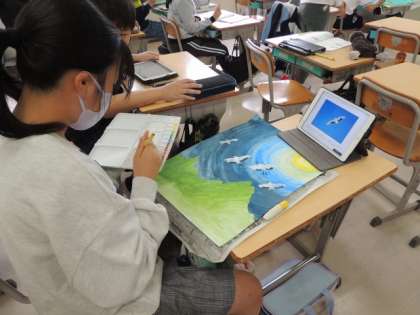 図工の時間に、どの学年も読書感想画を描いています。