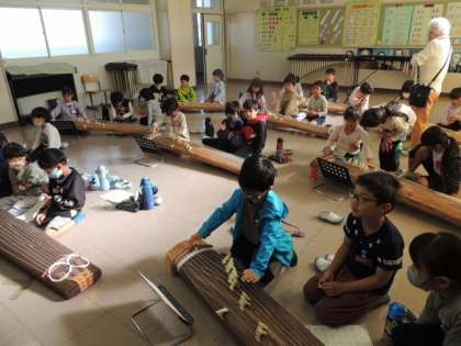 1年生も箏の演奏にチャレンジしています。