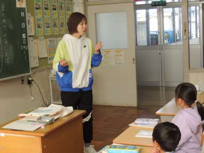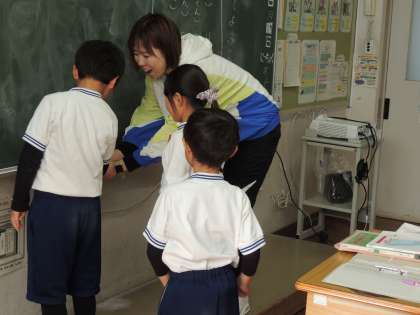 子どもたちは、「先生が困っていたら助けてあげよう」という気持ちをもっているようです。先生がチョークフォルダーを落とすと、さっと直しにくる子が数人!
