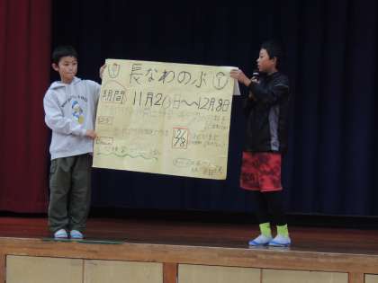 「これからなわとび練習をがんばりましょう」と元気に呼びかけていました。