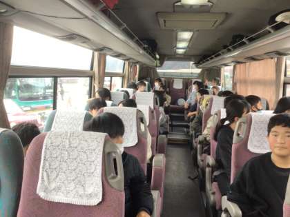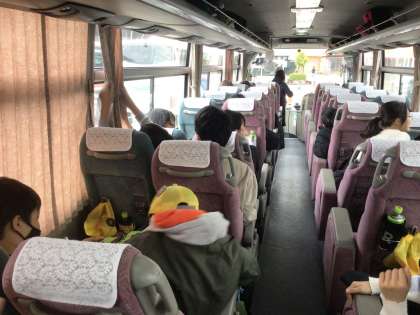 2号車(2組)のバスの様子です。最近の流行りの音楽を聞きながら、友達としゃべったり、歌ったりして楽しく過ごしています。2回目の休憩もおわり、いよいよ法隆寺へ!