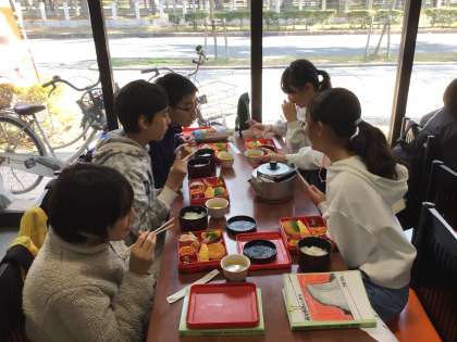 修学旅行 昼食 公開日 2023/11/28 更新日 2023/11/28 お知らせ 朝が早かったのでお昼ご飯が待ち遠しかったようです。 豪華なお弁当を嬉しそうに食べていました。 今は平城宮跡に向けて移動中です。