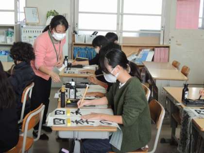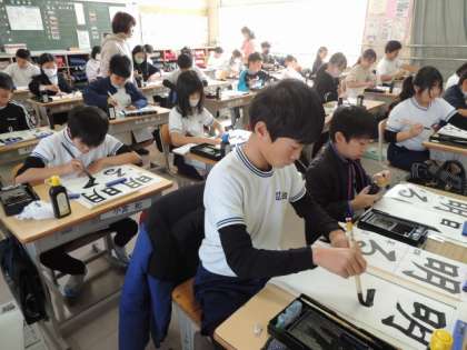 1月の書き初め大会に向けて、練習がスタートしています。昨日から、書写ボランティアの先生がおみえになって、丁寧に指導してくださっています。