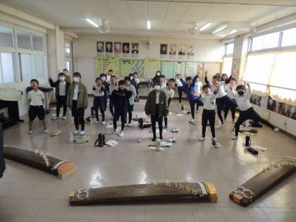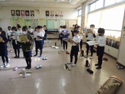 音楽の授業(4年2組) 公開日 2023/11/28 更新日 2023/11/28 お知らせ 元気な歌声が聞こえてくるので、音楽室へ行ってみると、4年2組の子たちが楽しそうに歌を歌っていました。一番盛り上がったのは、「校歌」でした。カメラを向けると、笑顔とピースサイン!「校歌を歌いたい」とリクエストし、先生が伴奏してくださいました。みんな、広川台小学校の校歌が大好きのようです。