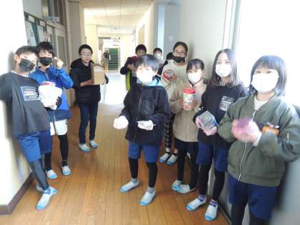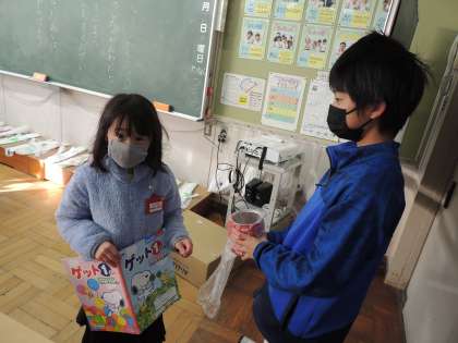 JRC委員が、お年玉募金の協力を全校のみんなに呼びかけています。
