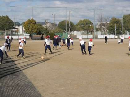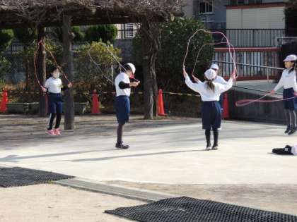 相談をしていない子にとっては長い放課。22日は、みんな運動場で元気に外遊びを楽しんでいました。