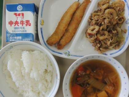 1月22日(月)の給食は… 公開日 2024/01/25 更新日 2024/01/25 お知らせ 1月22日(月)の給食は、たべまるのおすすめ献立でした。ご飯、はちはい汁、切り干し大根のソース炒め、ししゃもフライ、牛乳でした。