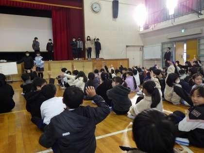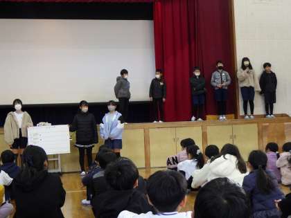 保健委員会は、冬休みモードの子のために、生活リズムを改善できるようなすごろくを考えてくれています。毎日お題をクリアすると1つシールが貼れるというものです。達成率の良いクラスには賞状がもらえます。「賞状」という言葉を聞いて、子どもたちのやる気スイッチが入ったようでした。