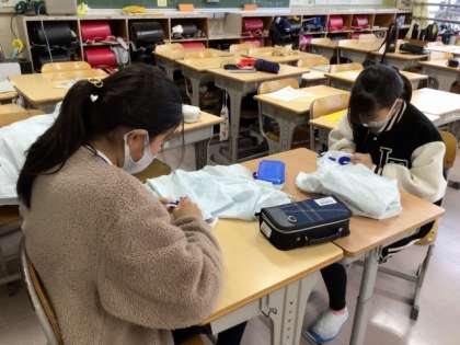 会社活動(6年生) 公開日 2024/02/21 更新日 2024/02/21 お知らせ 6年生が、6年間お世話になった学校やかかわった方に対して、感謝の気持ちを表すために、自分ができることを考えて会社を起こし、仲間を募ってともに自主的な活動をする=「会社活動」をスタートさせました。 今日は雨降る中にもかかわらず側溝の掃除をする子、「配膳台カバーを洗ってほしい」という声を聞いて、洗濯する前に取れそうになった学年表示に気付いて縫い付ける子など、6年生の自主的な動きがみられました。