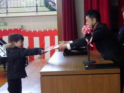 最初に、校長先生から修了証をいただきました。どの学年も元気な声で返事をすることができました。