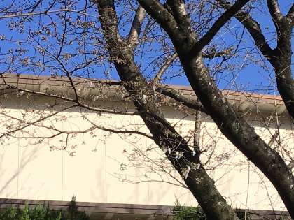 桜の花はまだ一本の木に5,6輪しか咲いていない状態でしたが、4月4日の入学式頃はもう少し咲いてくれているでしょうか。
