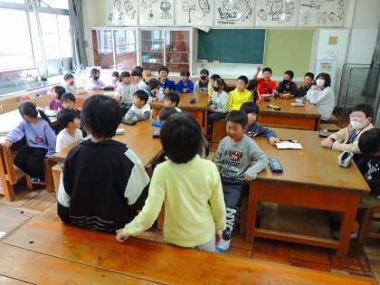 今年度初めての通学団会のため、通学団のめあてを話し合い、並び方や集合場所・集合時刻、登下校での注意点を確認しました。