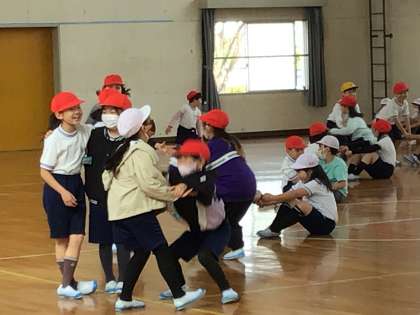1時間目、3年生のみなさんが合同で体育館遊びをしていました。