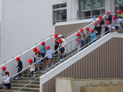 2時間目は全校で避難訓練を行いました。