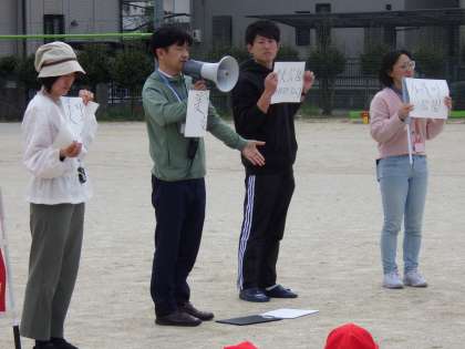 2 続いて「4800人」と書いた紙を見せました。「これも広川台小に関係するよ」と伝えると「運動場に避難できる人数だ」見事、正解しました。運動場には屋根はないので、車に泊まる、または持参したテントに泊まる想定の人数だそうです。(防災対策課の方より)