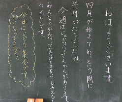 (写真は本日の4年1組の朝の黒板です)