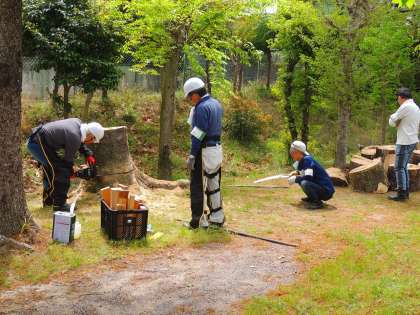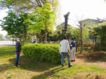 美里1区お助け隊のみなさんが20日(土)に校内の木を伐採してくださいました。