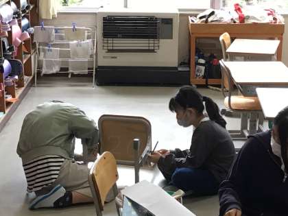 4年2組の教室では、正しい姿勢で授業が受けられるように、自分の机、椅子の高さ調整を行っていました。