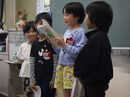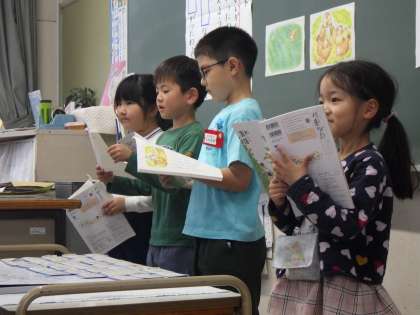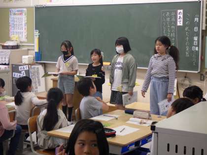 グループごとに国語の音読発表をしているクラスの様子です。