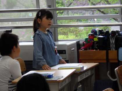 たくさんお家の方がいる中でも発表ができて立派です。