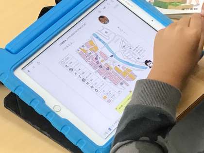 3年1組の子たちは、神谷先生の指示のもと、学習用タブレットのブックに入れてある副読本「とよた」を見ていました。