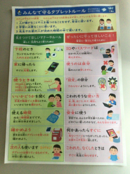 来週からの学習用タブレットの持ち帰りに向けて、全学級で添付してあるような紙を使って、10日(金)までに指導をします。