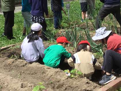 特別支援学級さんでは、みんなで畑に手分けしてサツマイモ植えを行っていました。
