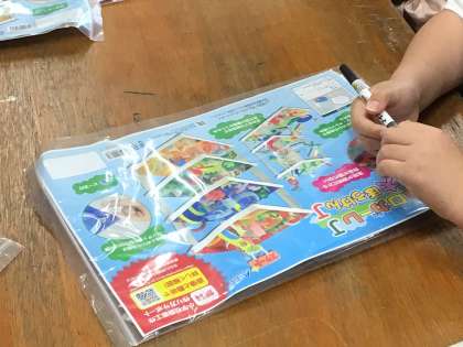 袋の中にビー玉があったので、それを転がすコースを作るみたいですね。