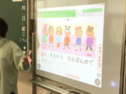 1年1組さんでは算数の授業で「なんばんめ かを かんがえよう」を行っていました。