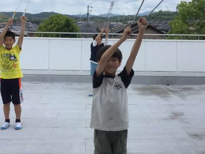 本日も、なかよしタイムに「トーチワーク」の練習を5年生の子たちが行っていました。