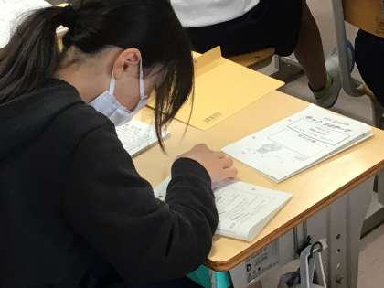 朝のパワーアップタイムの時間を活用して、1組さん、2組さんともにキャンプのしおりを組みました。