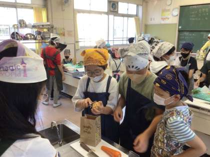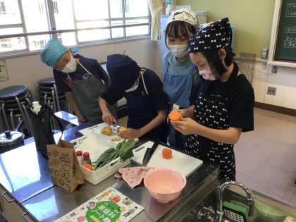 5年生は今日、1・2時間目に2組さん、3・4時間目に1組さんが調理実習を行います。
