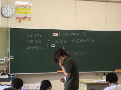 6年1組さんでは、社会科の授業で三権分立について勉強していました。