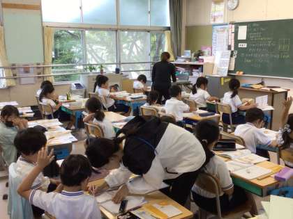 2年1組さん、2組さんの算数の授業に一緒に参加していただき、「丸付け」「声掛け」などのサポートをしていただきました。