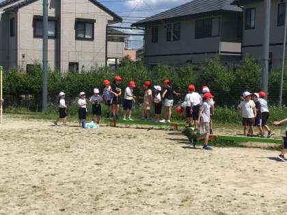 両方からのぼり、先頭の子がじゃんけんをしていくゲームをしていました。