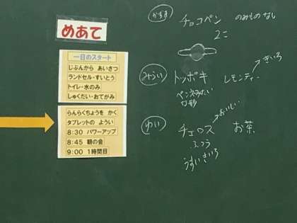 朝、登校してからのルーティーンを示してあったり、一人ひとり今日の日程が記入された予定表があったりします。