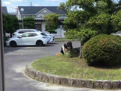 今日はやや蒸し暑さを感じる中ですが、ロータリーの草取りをしてくださっていました。