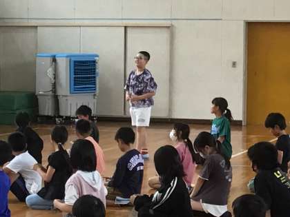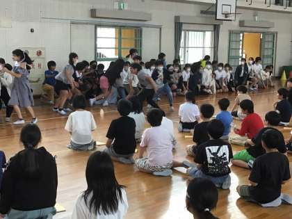先ほどから体育館で5年生のみんなが荷物点検をしています。