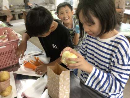 午後1時40分からカレー作りが始まる予定でしたが、間に合わない班がありました。