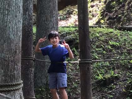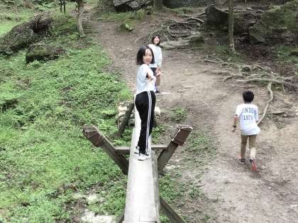 自然の中でアスレチックを満喫中です。