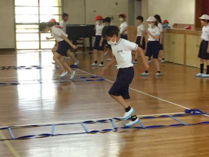 体育館では6年2組さんが体育の授業で体力UPトレーニングを行っていました。