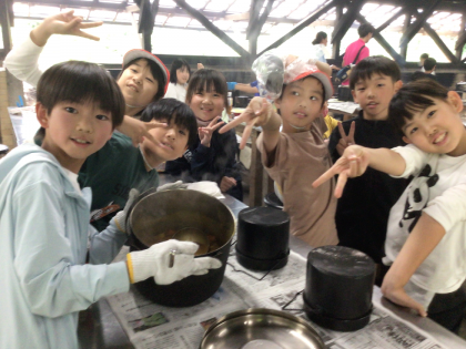 実はルーを入れた後、いくつかの班はシャビシャビのカレーになっていました。そこで、班の中で話し合って、煮詰めて水分を飛ばせばちょうど良い感じになるのではないかと考え、焦げないように、灰が入らないように気を付けながら、煮込んでいたのです。