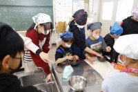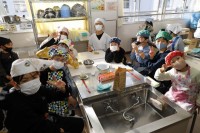 1・2時間目は6年1組のみなさんが家庭科の授業で、「洗濯」を実体験中です。