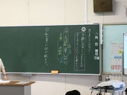 6年2組さんでは国語の授業で「主語に注目して、さまざまな文と文とのつながりを考えよう」というめあてで授業を行っていました。