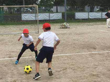 体育館で行われていたソフトミニバレー、運動場で行われていたサッカーです。