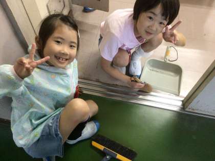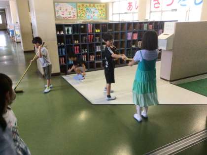 2年2組さんが学校公開できれいな教室を見てもらおうと清掃活動に取り組んでいました。 ありがとう。